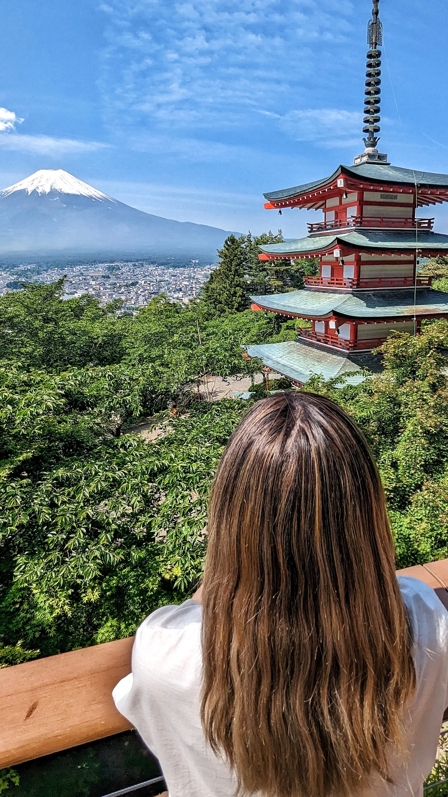 This is probably the most iconic Japan photograph you've ever seen: a five-story red pagoda with Mount Fuji perfectly framed behind it. The 400-step climb is totally worth it.